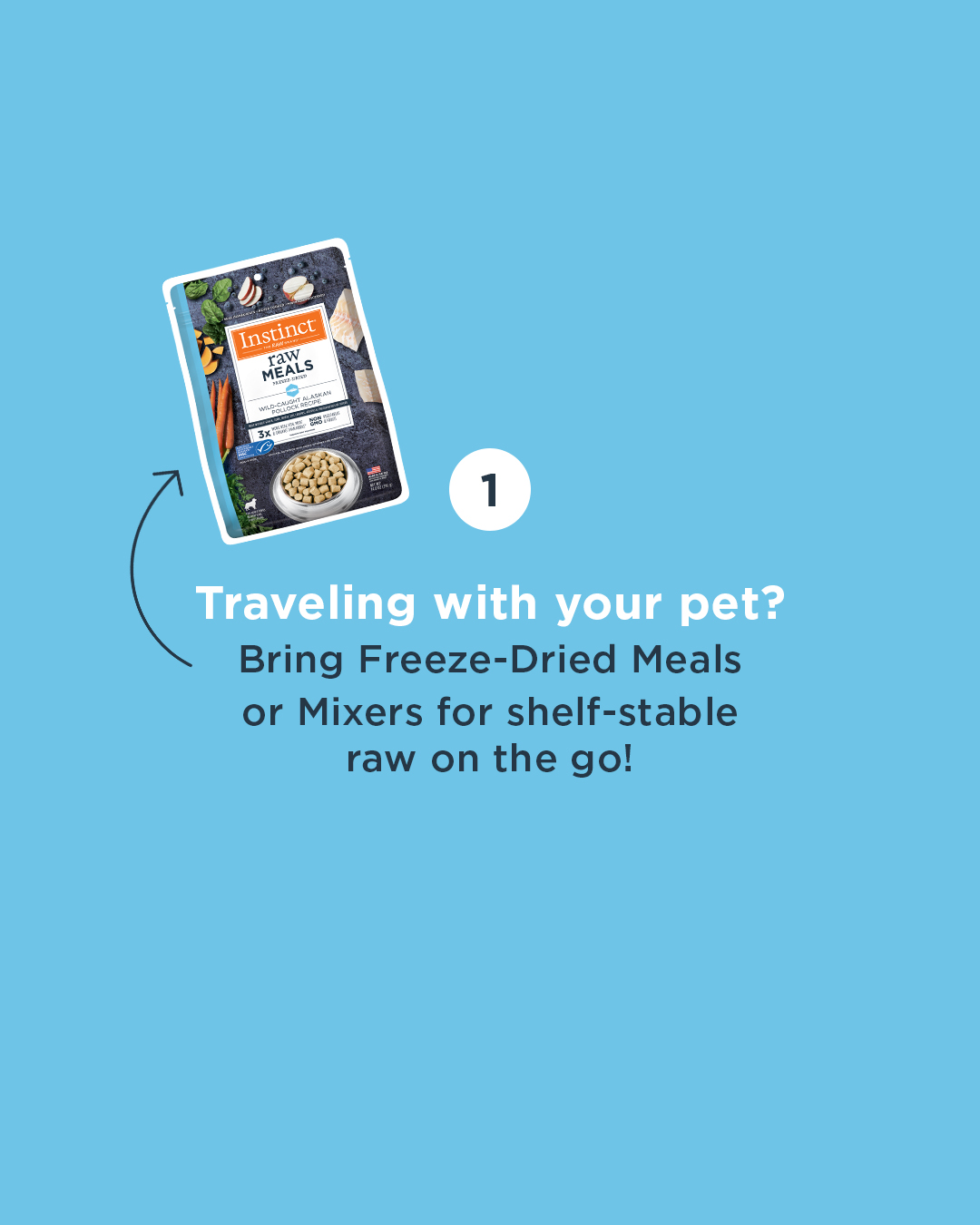 Make mealtime simple, nutritious, and travel-ready with Instinct Raw Boost Mixers. These lightweight, shelf-stable packs are perfect for life on the go. No mess, no fuss, just the raw nutrition your pet craves – use them as a treat or a topper! Whether you’re road-tripping or hiking the trails, you can keep your pet happy and healthy with every bite. For anxious pups, reach for our Raw Boost Mixers Tranquility, crafted with cage-free turkey and calming ingredients like cherries and passionflower to help support peace of mind.