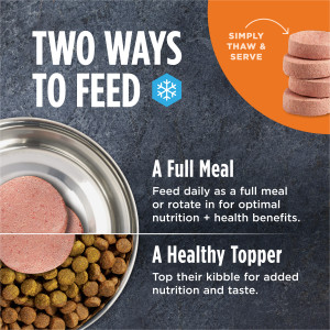 Raw is never cooked and is less processed than kibble, cans or refrigerated pet food - keeping the most nutrients intact